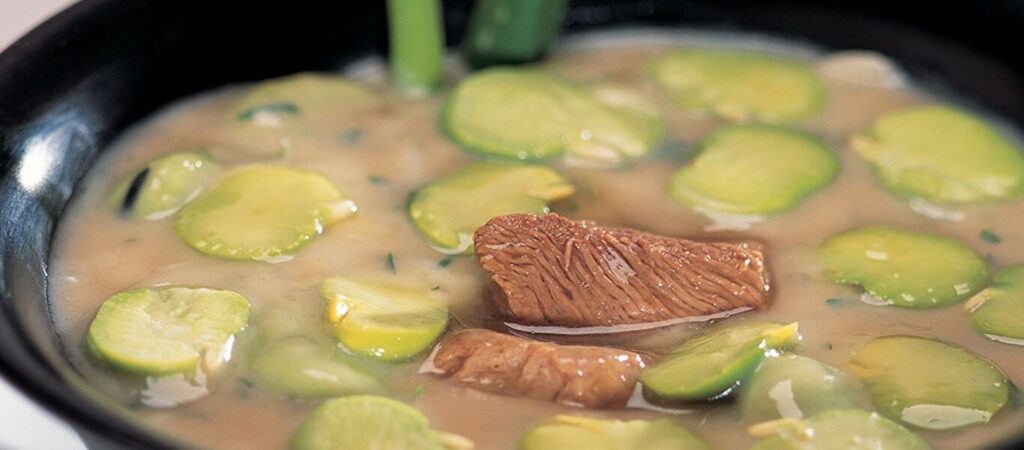 يُسخن زيت الزيتون في قدر كبيرة ويُضاف إليه الثوم، والفول الاخضر، والكزبرة، والدقيق. تُطهى المكوّنات وتُحرّك لمدة دقيقتين.