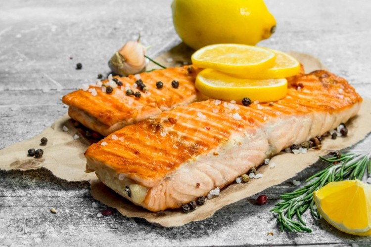 - ضعي شرائح السلمون في صينية فرن، ثم وزعي صلصة الزبدة والثوم والليمون على الشرائح بالتساوي.