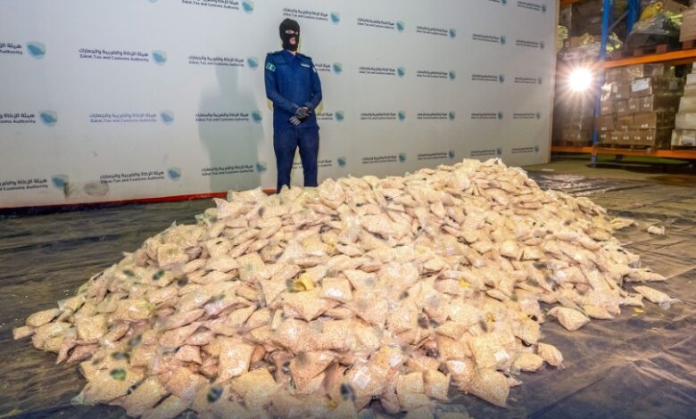 أحبطت هيئة الزكاة والضريبة والجمارك (زاتكا) في منفذ البطحاء شرقي السعودية، محاولتي تهريب 817733 حبة محظورة، عُثر عليها مخبأة في شاحنتين قدمتا إلى المملكة عبر المنفذ.